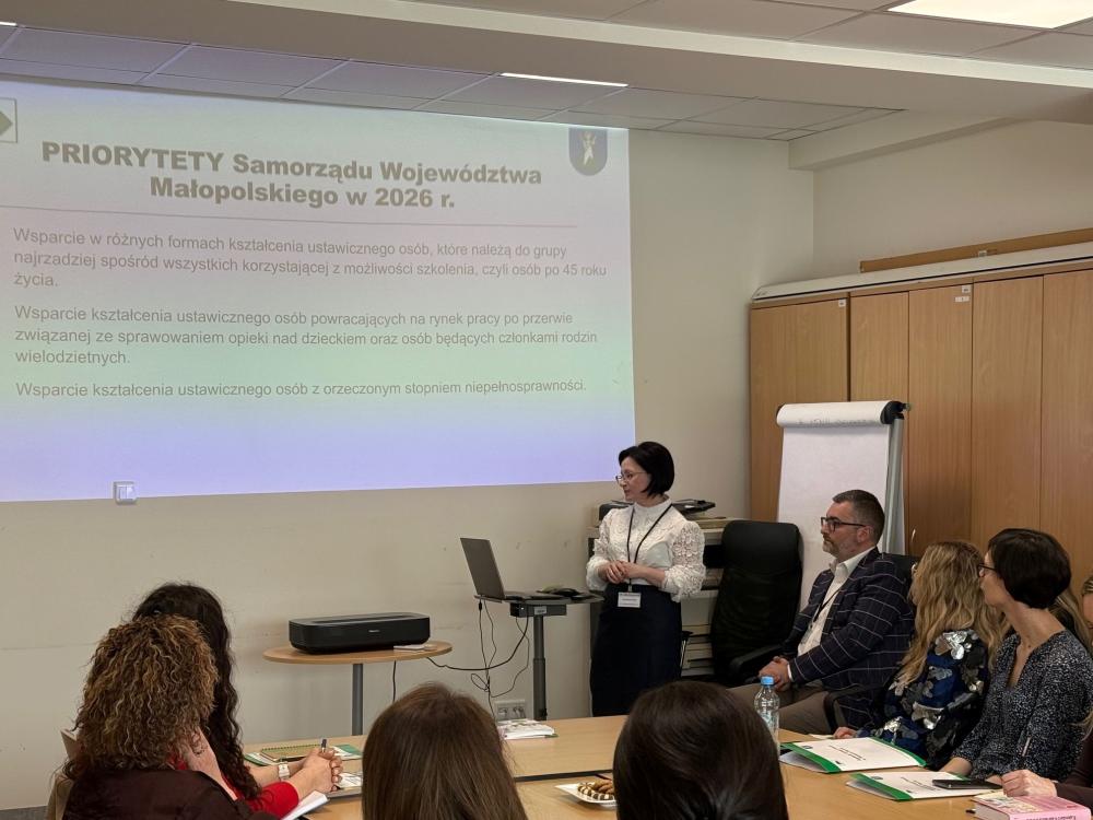 W dniu 14.04.2026 r. w sali konferencyjnej Sądeckiego Urzędu Pracy (SUP) odbyło się spotkanie informacyjne, którego adresatami byli przedsiębiorcy oraz osoby prowadzące jednoosobową działalność gospodarczą zainteresowane pozyskaniem dofinansowania na kształcenie ustawiczne ze środków Krajowego Funduszu Szkoleniowego (KFS).